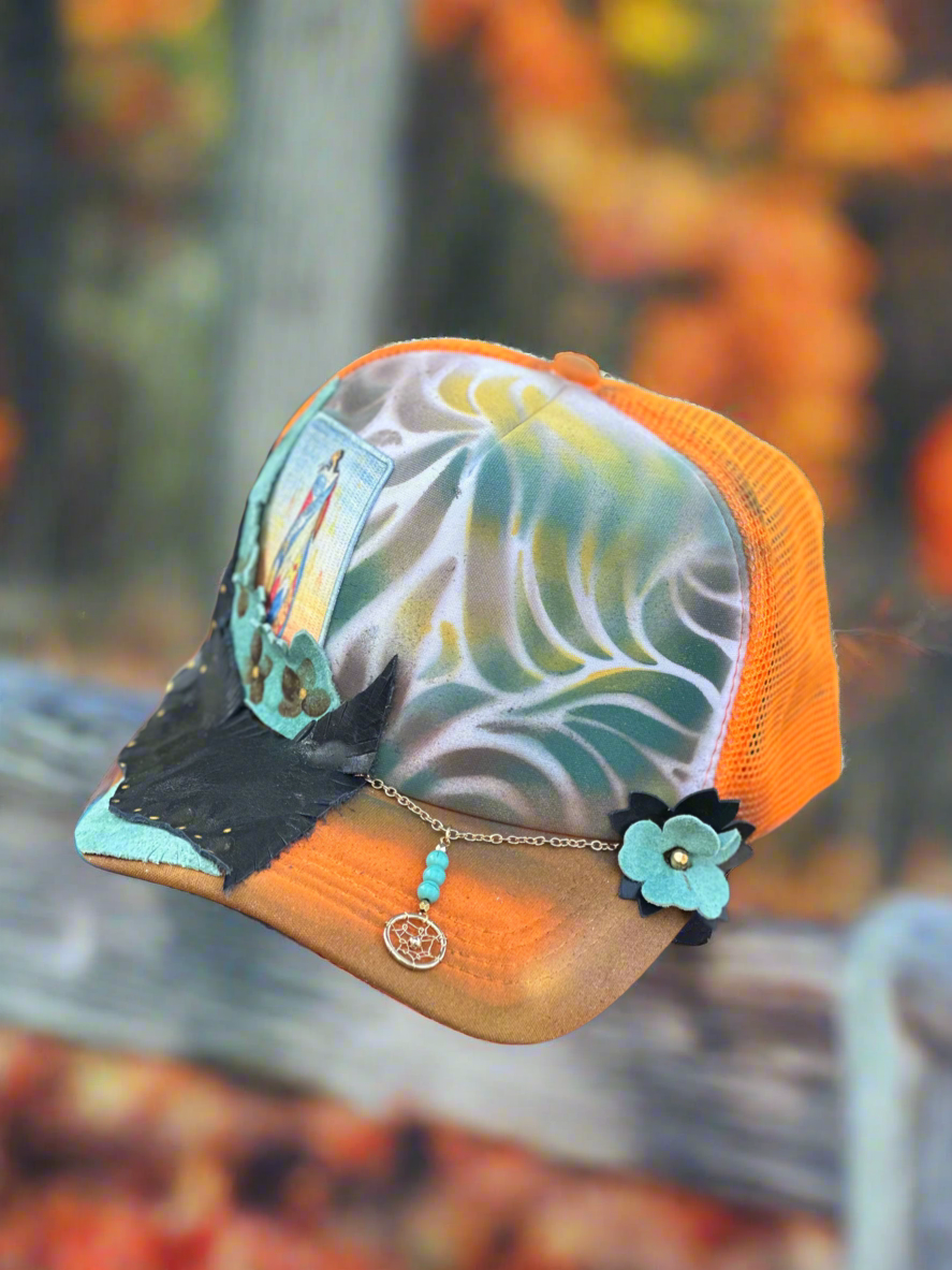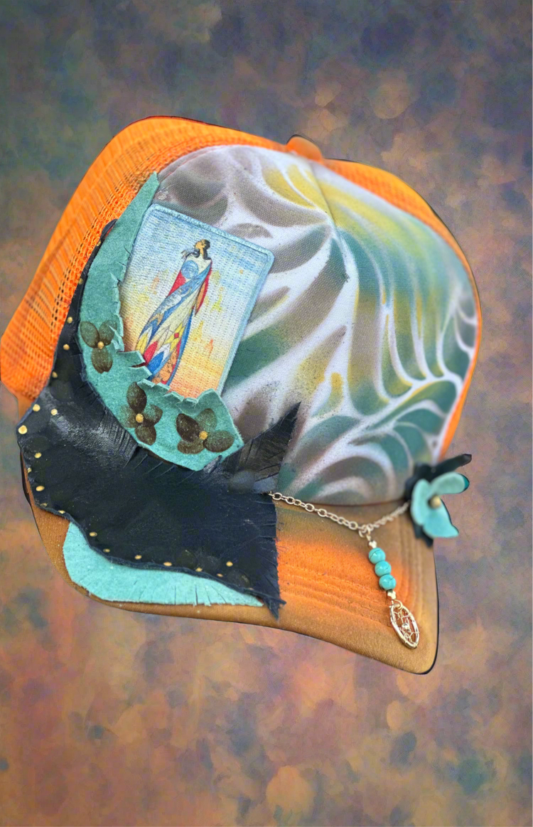 Elevate your style with the Not Forgotten hat, featuring a unique custom design inspired by indigenous art. Show your support for cultural diversity and stand out in any crowd. Hand-painted and expertly crafted, this hat is a must-have for any fashion-forward lady.